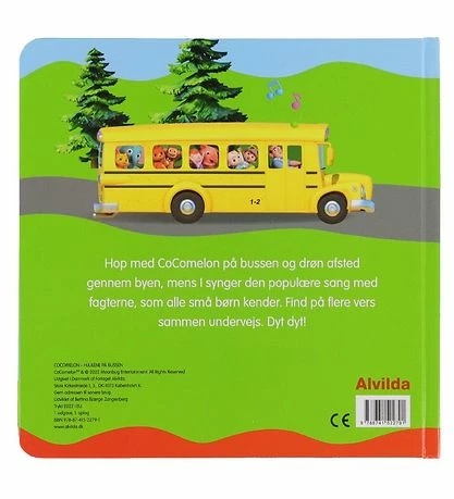 Sød Alvilda billedbog med titlen “Cocomelon – Hjulene på bussen”. Barnet kan i denne bog lære teksten til sangen “Hjulene på bussen” sammen med børnene fra CoComelon. På hver side står der et nyt vers, som både børn og voksne kan synge med på.