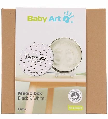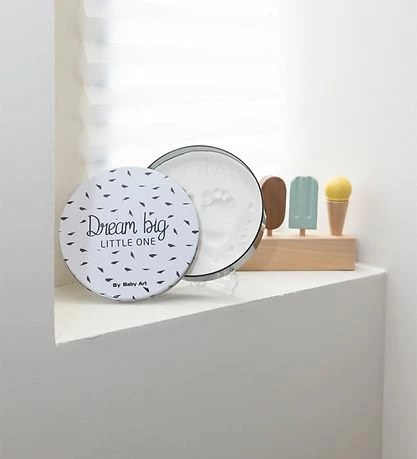 Baby Art sættet indeholder alt, der skal bruges til at lave et hånd- eller fodaftryk af din baby. Med sættet kan du forevige minder af din baby, og med det medfølgende stativ kan du lade aftrykket stå til pynt i hjemmet eller bruge det som en personlig gave.