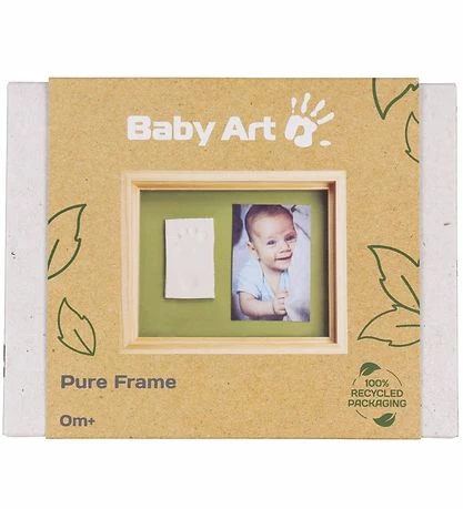 Baby Art sættet indeholder alt, der skal bruges til at skabe et billede med plads til et hånd- eller fodaftryk og et billede af din baby. Baggrunden i rammen er vendbar og kan enten være i grøn eller orange. Billedet egner sig perfekt til at forevige minder af baby, som kan være en personlig tilføjelse til hjemmet eller bruges som en gave.