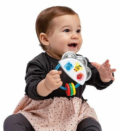 Baby Einstein ranglen består af en blå bidering i den ene ende, som også fungerer som håndtag. Når ranglen rystes, så spiller der musik i form af en tamburin, som sidder i den anden ende.