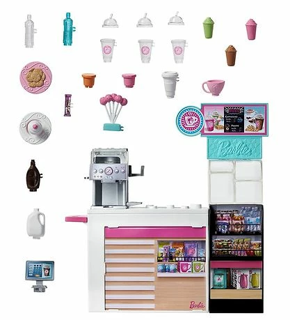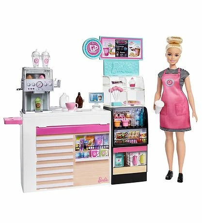 Barbie dukkesættet lægger op til mange timers sjov og leg. Barbie dukken elsker sit arbejde so barista. Hver dag oplever dukken nye ting og nye mennesker. Barnet kan slippe sin fantasi løs og finde på nye lege hele tiden.