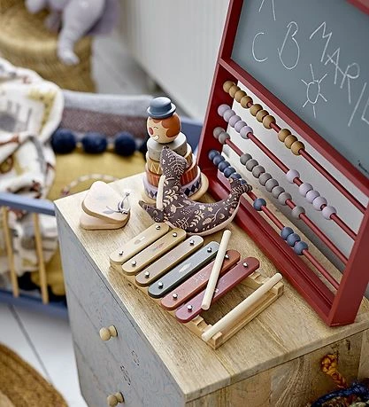 Flot Bloomingville kugleramme i træ med kugler i fine pastelfarver.