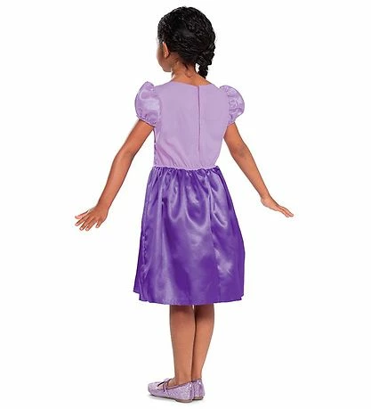 Yndig Ciao Srl. udklædning, som forestiller en prinsessekjole i lilla satin. Øverste er der et print af rosa snøre samt smukke Rapunzel.