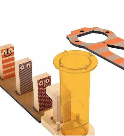 Djeco kuglebanen består af 42 dele, som kan sættes sammen på et utal af måder. Spillet indbyder til mange timers sjov og opfindsomhed med at konstruere en bane og se, hvordan der bliver skabt en kædereaktion.