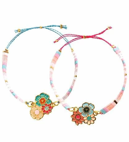 Djeco sættet indeholder alt du skal bruge til at lave flotte og unikke armbånd. Armbåndene består af brede perler, og ud af det får man brede og smukke armbånd, som er helt dine egne.