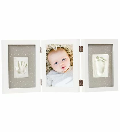 Smart Dooky håndaftryk sæt med en triple billedramme i hvid. Sætte indeholder følgende: