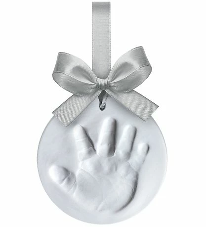 Dooky ophænget er lavet til at kunne lave et aftryk af en baby fod eller hånd. Aftrykket kan sættes i den medfølgende ring og hænges op med det fine bånd.