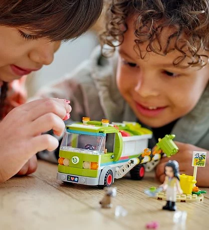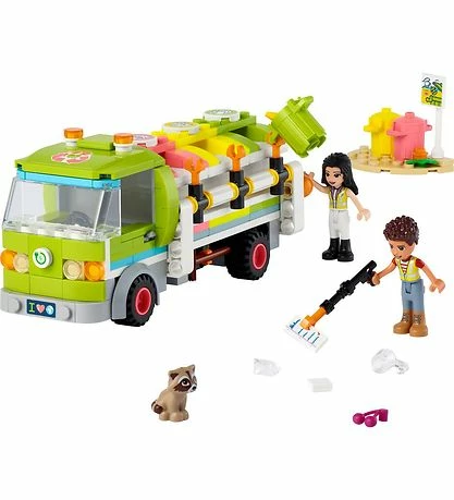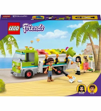 LEGO Friends sættet er det perfekte legetøj til det kreative barn, der vil bygge og lege med figurerne Emma og River, der samler skrald og kommer det i deres affaldssorteringsbil for at beskytte dyrelivet. Affaldssorteringsbilen har en bevægelig arm, som man kan sætte på spandene og vippe indholdet op i beholderne. Der medfølger tre skraldespande til sortering af papir, madvarer og glas samt andet tilbehør.