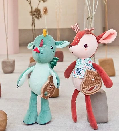Sød Lilliputiens musikuro i form af Dragen Joe i grøn med fine detaljer i tern.