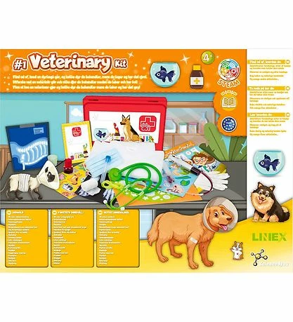 Liniex sættet er både sjovt og lærerigt og sørger for at du kan hjælpe en helt masse kæledyr med helbredet. Der kan kigges på røntgenbilleder og gives forbinding på skaderne. Der kan også bages lækre hundekiks og meget mere.