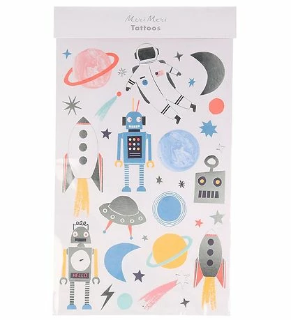 Flotte Meri Meri tatoveringer med motiver i et robot- og rum-tema.