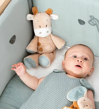Hyggelig Nattou bamse med form som giraffen Luna i brun plys, med søde detaljer.
