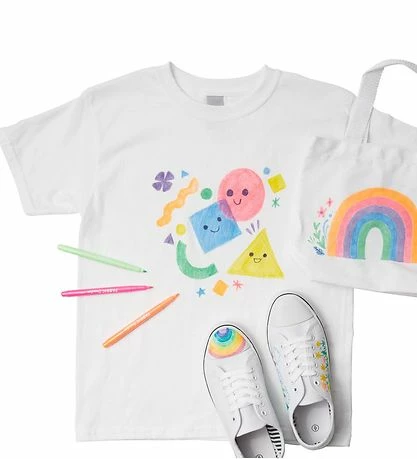 Ooly tuscherne har en rund form og en god spids, som kan bruges til at tegne på t-shirts, sko, tasker og meget mere. Sættet indeholder 9 klassiske farver og 3 neon farver, som kan bruges til at pifte kedeligt tekstil op.
