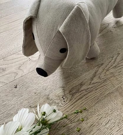Sød Pine Cone bamse i ensfarvet beige med form som en lang hund.