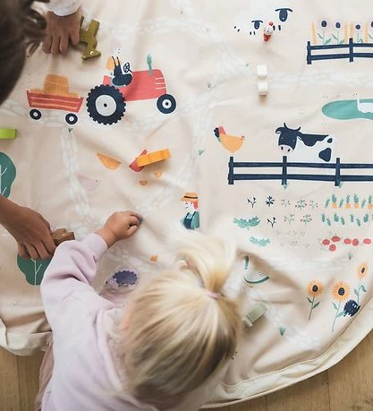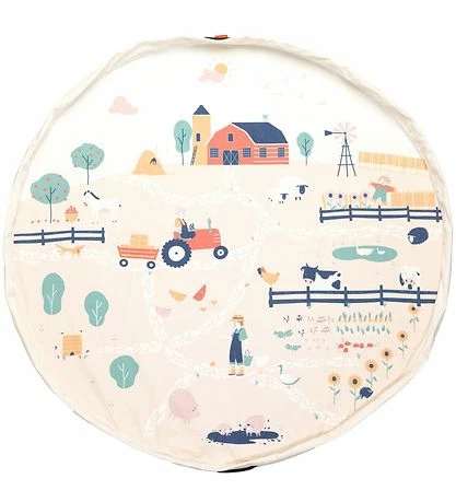 Smart Play&Go legetøjstæppe i hvid med print af en bondegård på den ene side og i hvid med print af fugle og blade på den anden side.