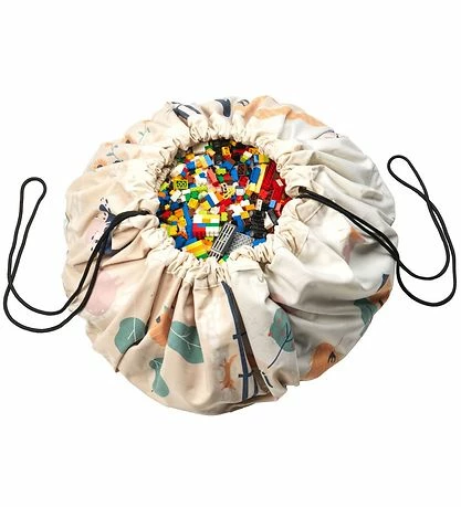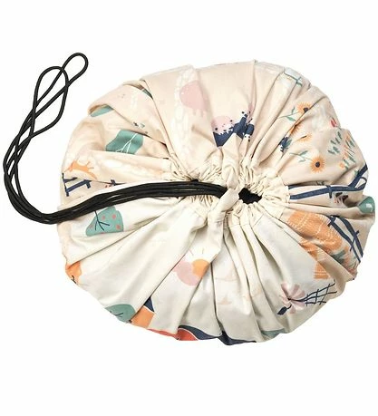 Play&Go legetøjstæppet er et stort cirkelformet stykke stof med en løbegang hele vejen rundt med en sort snor, så man kan snøre tæppet sammen til en pose. I posen kan man opbevare sit legetøj, og når børnene synes, at legetøjet skal med ind i stuen, kan posen åbnes og legetæppet folder sig ud. Bagefter er det hurtigt og nemt at rydde op og lægge på plads. Den er god at tage med på stranden, da den er vandfast.