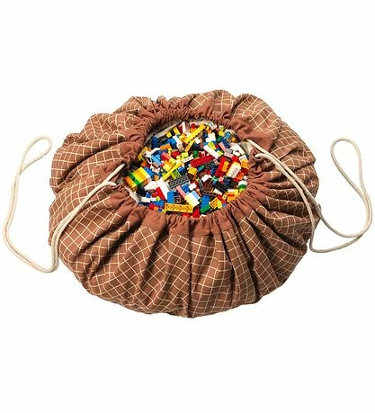 Smart Play&Go legetøjstæppe i brun med hvide tern på den ene side og i hvid på den anden side.