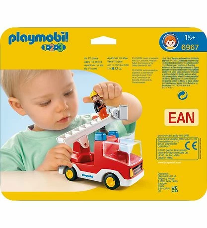Sjovt Playmobil 1.2.3 sæt med 2 dele, en brandmand og en brandbil.