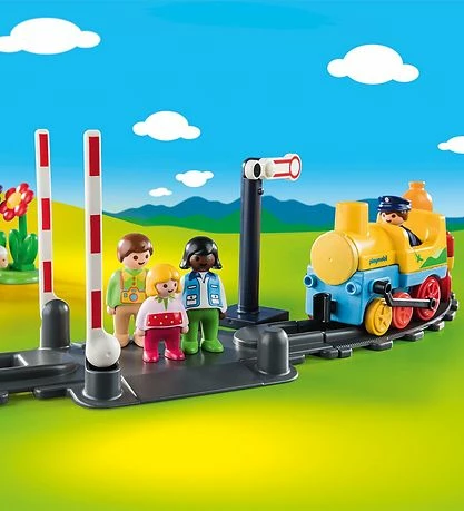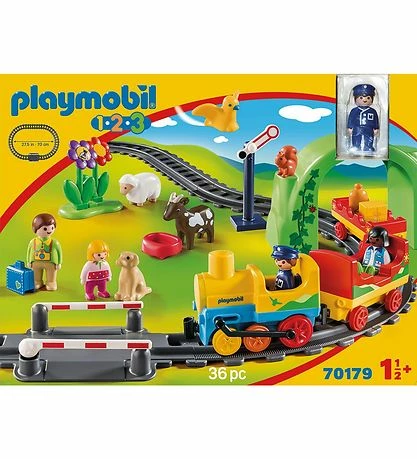 Sjovt Playmobil 1.2.3 sæt med 36 dele, som samles til en togbane.
