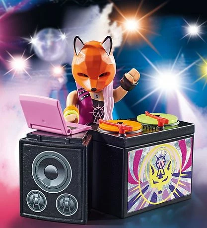 Lille Playmobil SpecialPlus sæt med i alt 11dele, der tilsammen udgør en DJ med pladespiller og en rævemaske samt tilbehør.