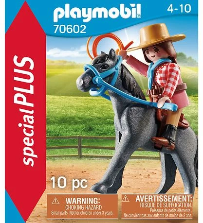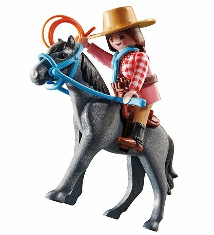 Lille Playmobil SpecialPlus sæt med i alt 10 dele, der tilsammen udgør en westernrytterpige med hest samt tilbehør.