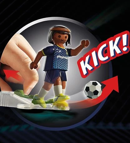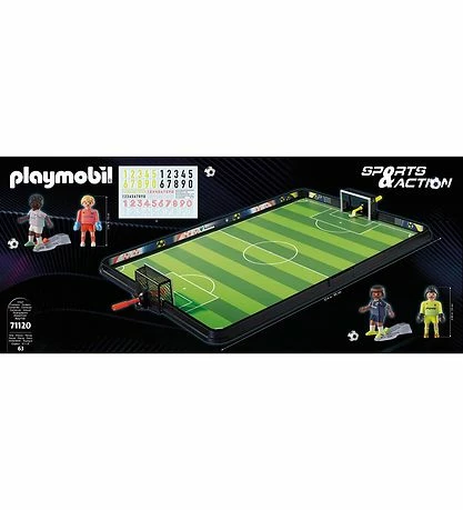 Skru op for fodboldfeberen med fodboldstadionet fra PLAYMOBIL. Efter opvarmningsfasen skal spillerne ind på banen, og så kan spillet begynde. Takket være den praktiske kick-funktion kan flade og høje bolde lægges præcist. Målmændene kan drejes til siderne med en pind bagpå. Med tal-etiketterne bliver yndlingsspillernes spillernumrene klæbet på i løbet af et øjeblik.
