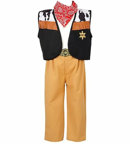 Sej Souza udklædning som forestiller en cowboy. Vesten er sort med koprint ved skuldrene og en sherifstjerne. Bukserne er i ensfarvet sandfarvet, og tørklædet er i rød med hvidt print.