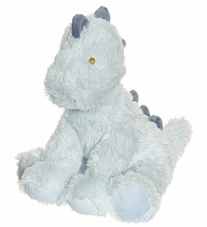 Sød Teddykompaniet bamse i form af lyseblå dinosaur med mørkeblå takker på ryggen.