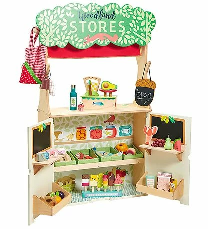 Tender Leaf legetøjet består af en købmandsbod på den ene side samt et teater på den anden side. Bodens side har et stort skilt i toppen. Den har to låger nederst, som åbner op til to store hylder, og på indersiden af lågerne er der også hylder og tavler, hvor der kan opbevares massere af mad. Når boden er lukket kan et gardin rulles ned. På siden kan den medfølgende jordbærpose hænge.